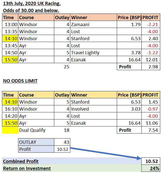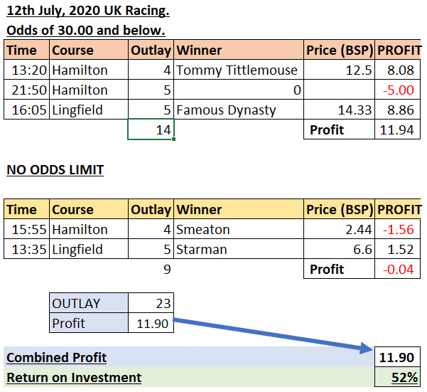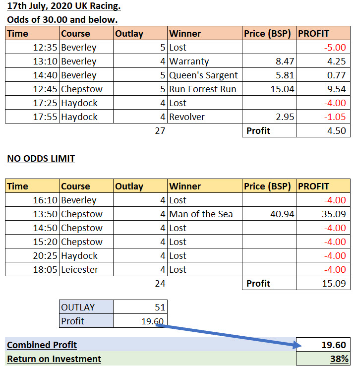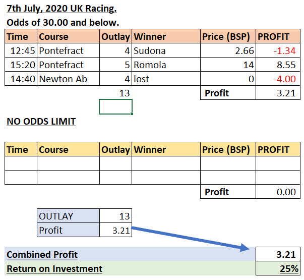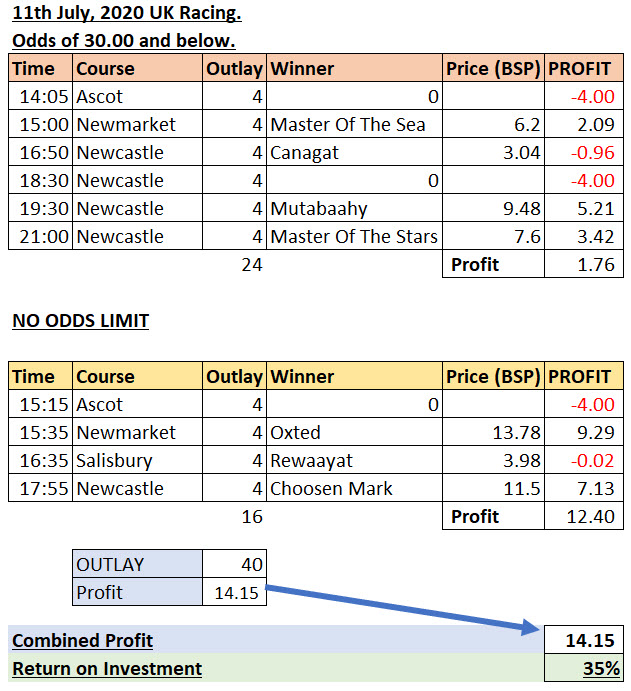 This video how June UK Racing Produced some nice profits.OK first lets look at the June 2020 results. Only the racing in UK was considered in the results below.