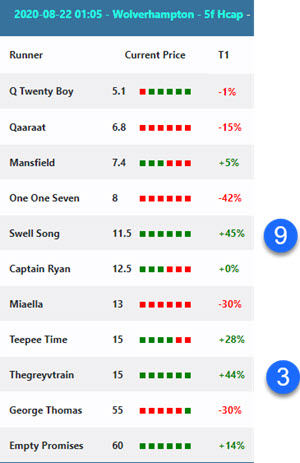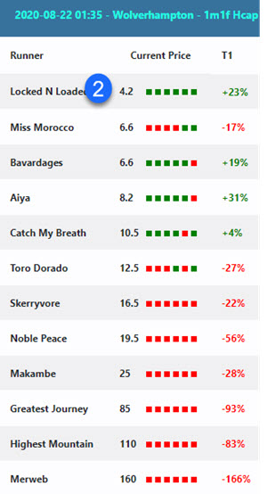 Wolverhampton: 21-8-2020 All Green Runners Starters: 28 Winners: 6 out of 9 Return: 48.43 Profit: 20 points.